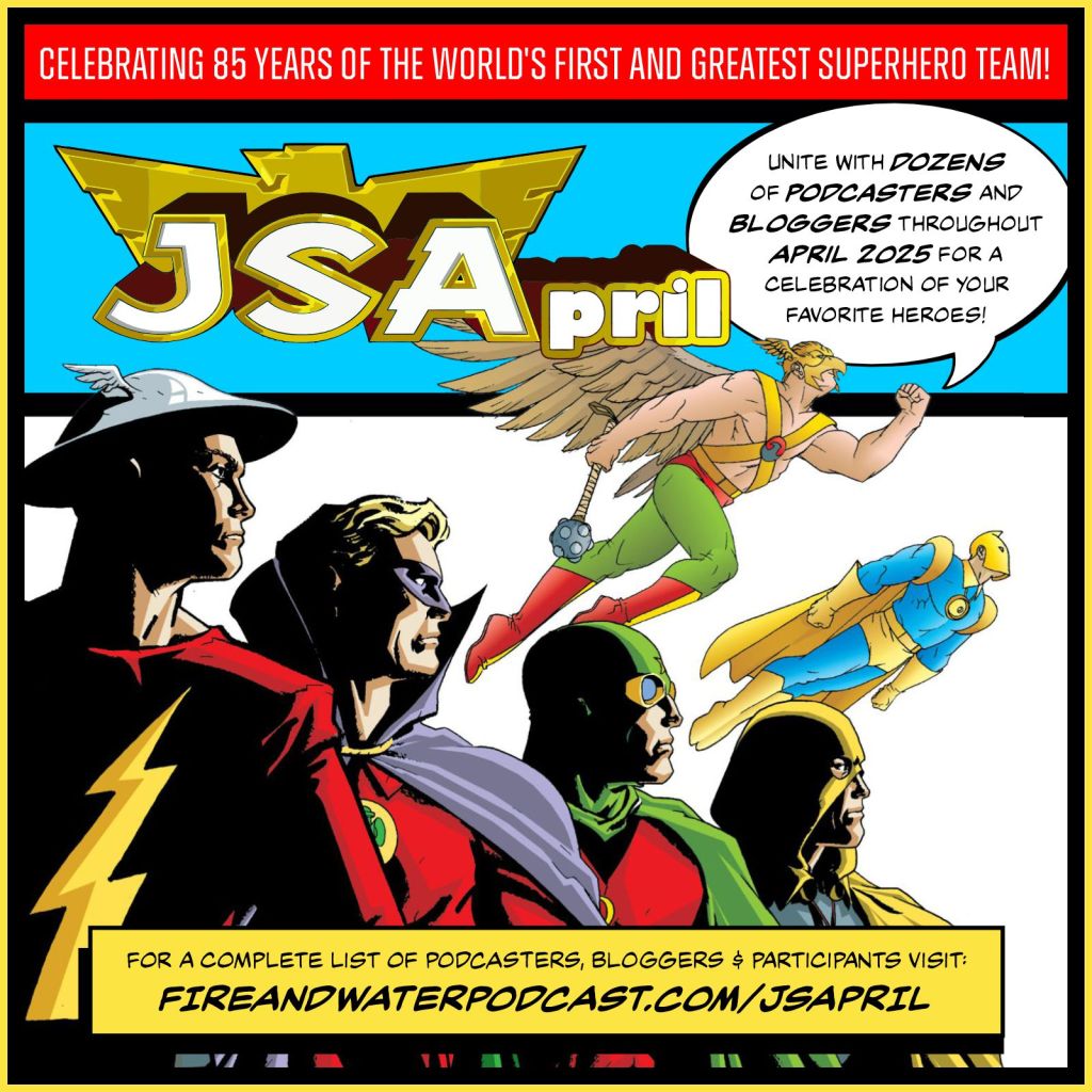 Back in 1940, eight sensational heroes united to create the world’s very first superhero team – the Justice Society of America! Now, 85 years later, the Fire and Water Podcast Network is gathering podcasters and bloggers from around the globe for a month-long celebration in an event we’re calling… JSApril!